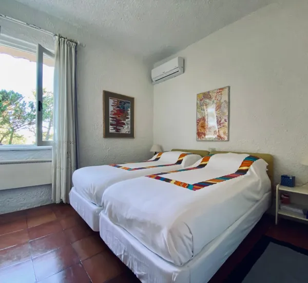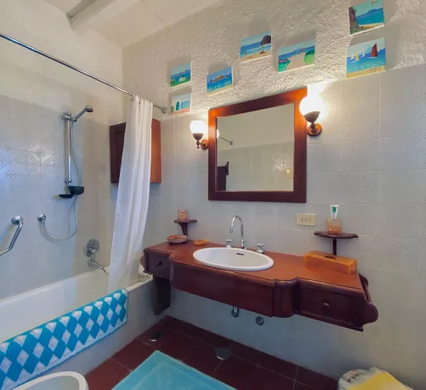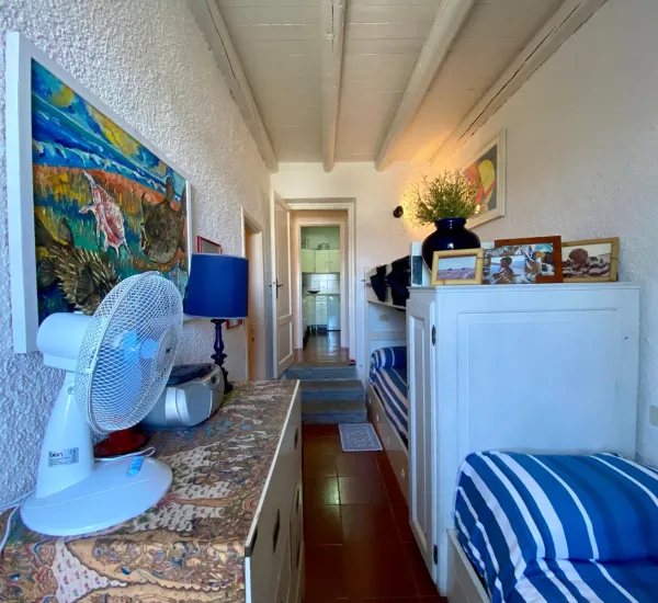 Questo immobile si sviluppa su un unico livello e offre una camera da letto padronale con bagno privato, una camera con tre letti singoli e relativo bagno privato, oltre a una camera matrimoniale e un ulteriore bagno.