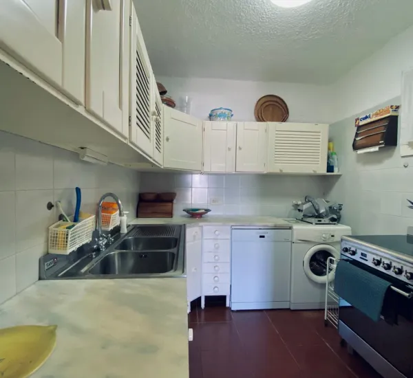 La cucina è spaziosa e ben equipaggiata, mentre l'ampia zona giorno, che include una zona pranzo, è illuminata e accogliente.