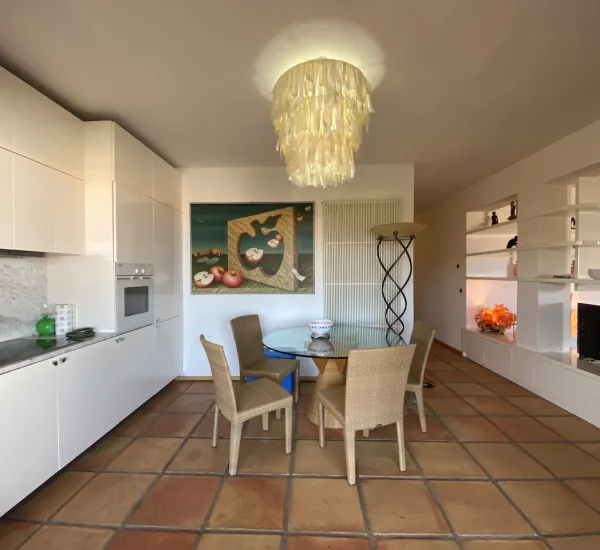 - La cucina a vista, moderna e completamente attrezzata, si integra armoniosamente con la zona pranzo, creando uno spazio conviviale e funzionale.