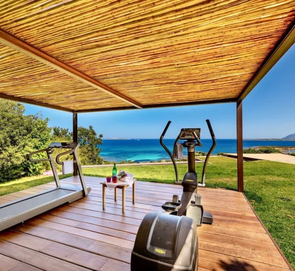 - Palestra all'aperto ombreggiata con Technogym Crosstrainer Treadmaster e Bike