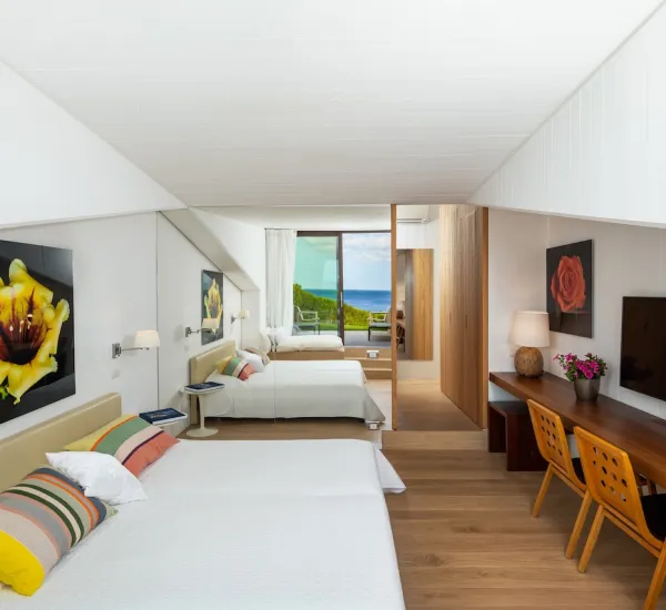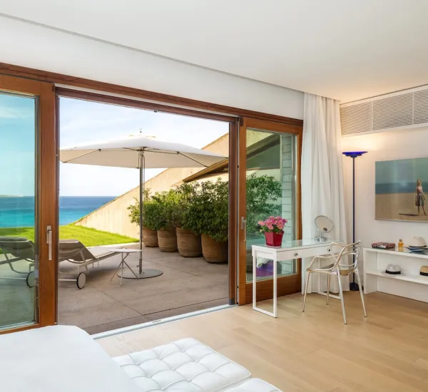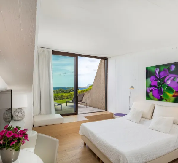 - Ampia camera matrimoniale di 50 mq con zona soggiorno e bagno privato, terrazza solarium e piena vista mare.