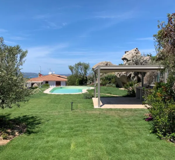 VILLINO VISTA MAREBELLISSIMA VILLETTA VISTA MARE ALLE PORTE DI PORTO ROTONDO . una proprietà completamente ristrutturata con ampio giardino privato e piscina , al suo interno troviamo un ambiente molto accogliete e curato in tutti i dettagli con soggiorno , cucina , terrazzo vista mare e una zona notte comoda per ospitare fino a sei persone, ma il vero punto di forza è il ricco giardino con fiori e prato all'inglese con un area pranzo coperta e una grande piscina .